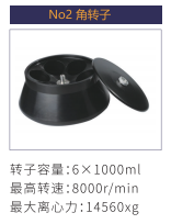 No2 | 角轉(zhuǎn)子 | 6x1000ml | 8000r/min | 14560xg |