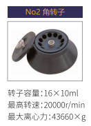 No2 | 角轉子 | 16x10 ml | 20000 r/min | 43660xg |