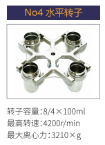 No4 | 水平轉子 | 8/4x100ml | 4200r/min | 3210xg |